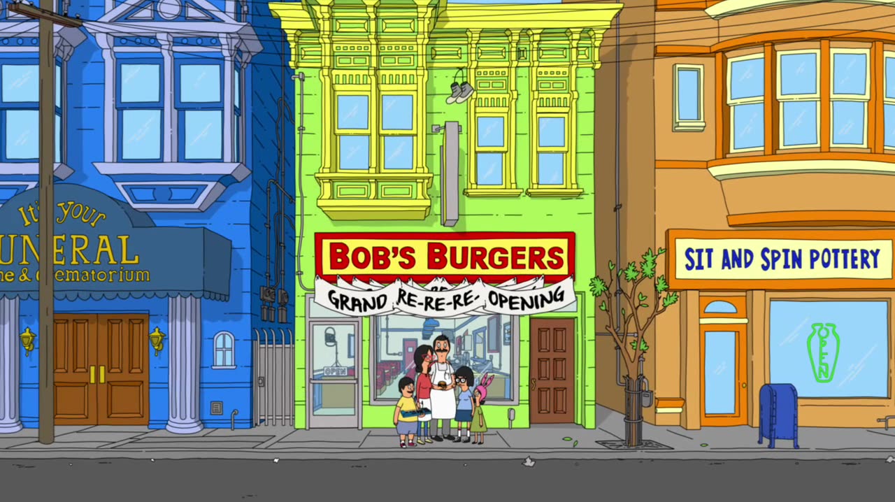 Bob's Burgers follows a third-generation restaurateur, Bob, as he runs Bob's Burgers with the help of his wife and their three kids. Bob and his quirky family have big ideas about burgers, but fall short on service and sophistication. Despite the greasy counters, lousy location and a dearth of customers, Bob and his family are determined to make Bob's Burgers "grand re-re-re-opening" a success.