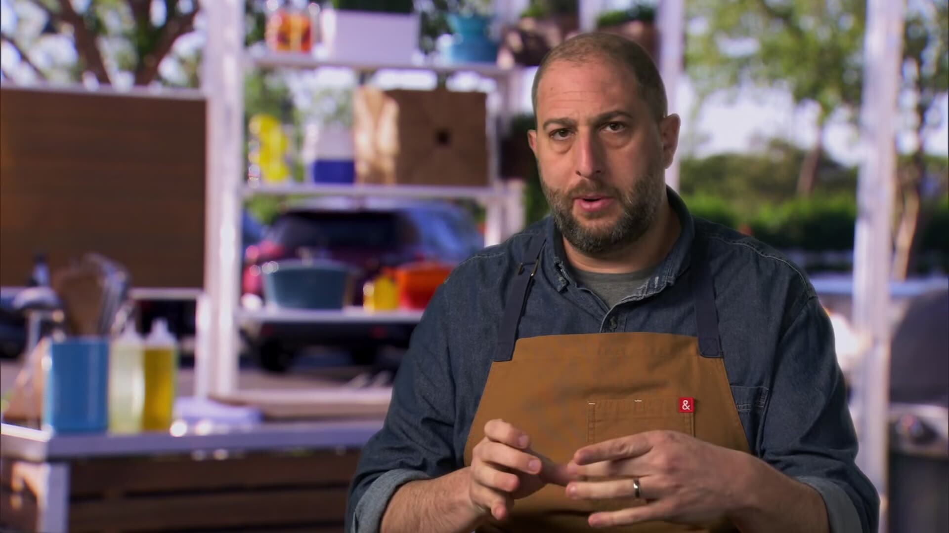 Alex Guarnaschelli hosts as chefs square off in a competitive pop-up kitchen outside a grocery store. To make their challenge dishes, the chefs must size up shoppers as they exit the store and negotiate for their grocery bags.