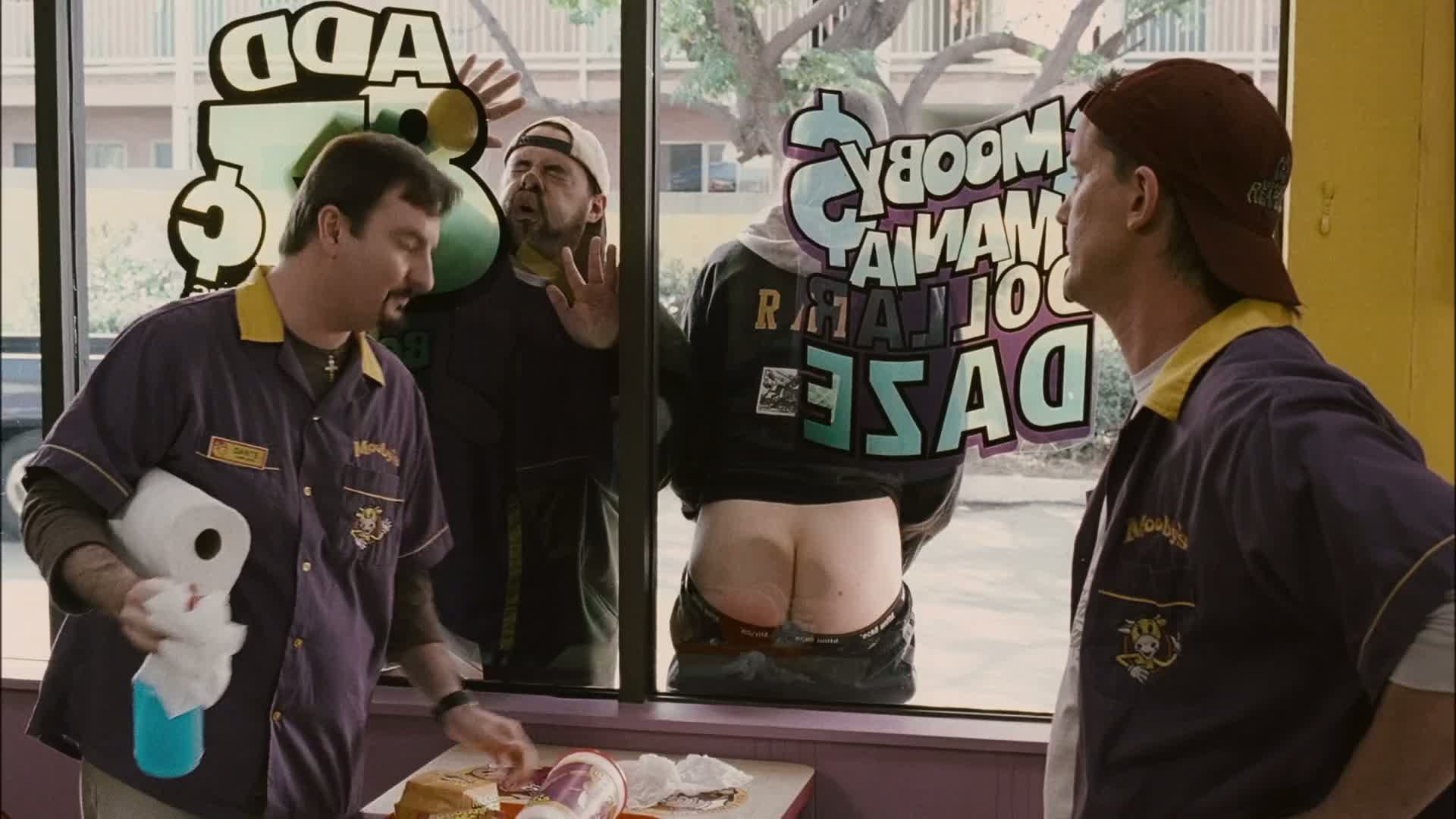 A calamity at Dante and Randall's shops sends them looking for new horizons - but they ultimately settle at Mooby's, a fictional Disney-McDonald's-style fast-food empire.