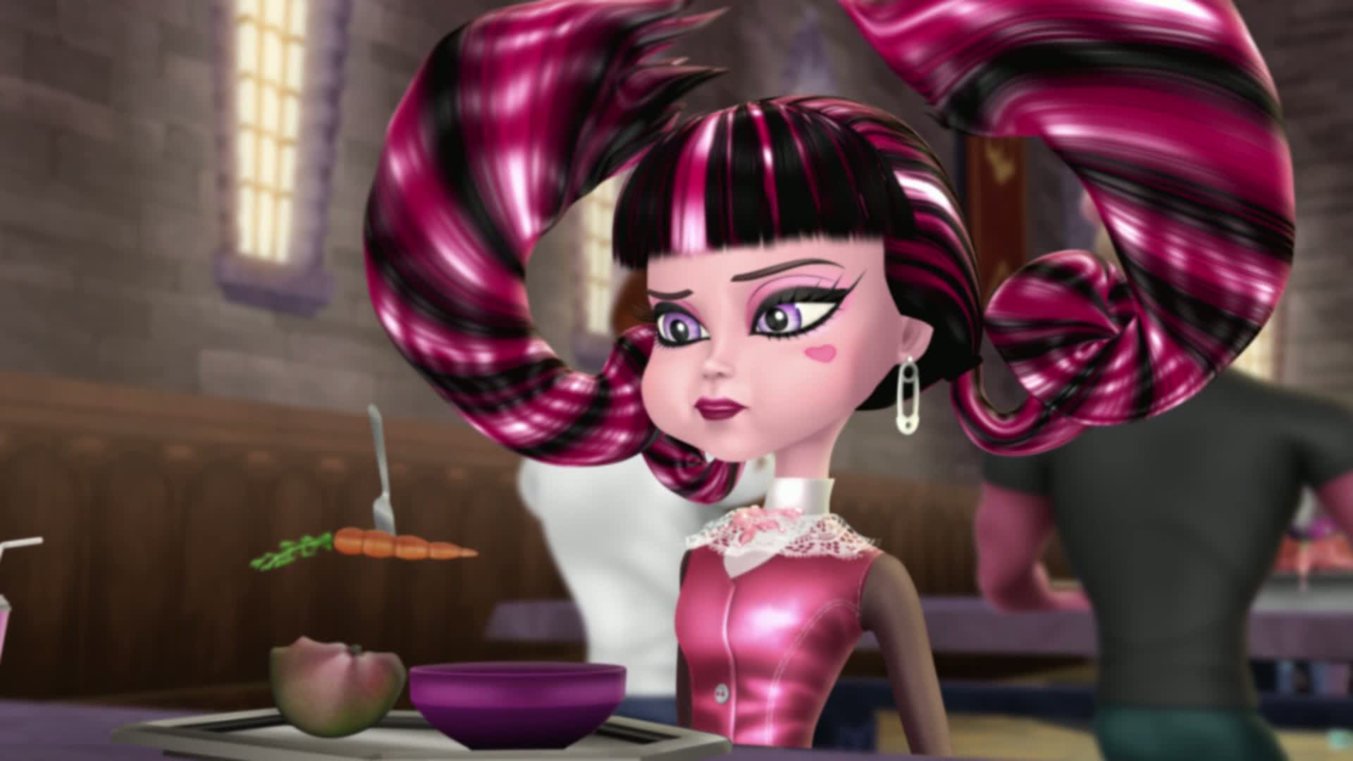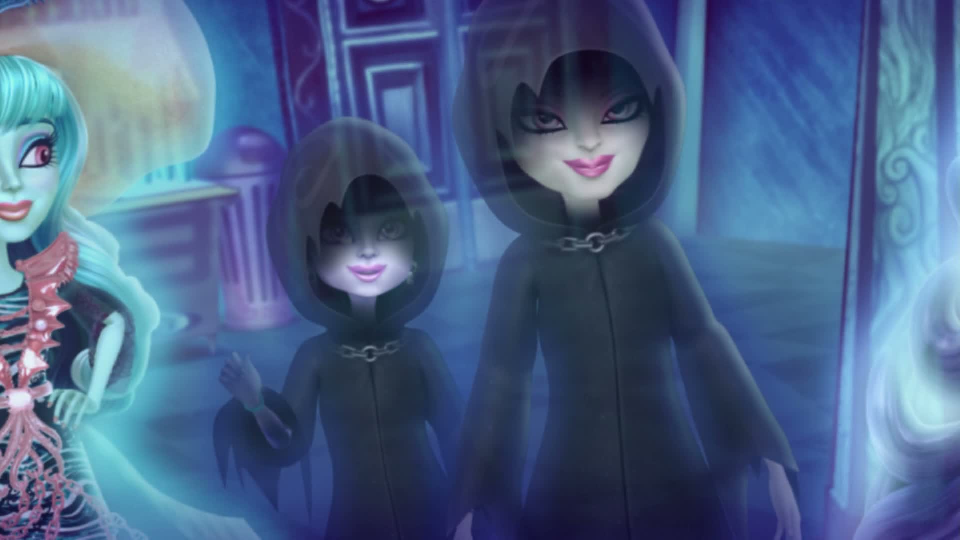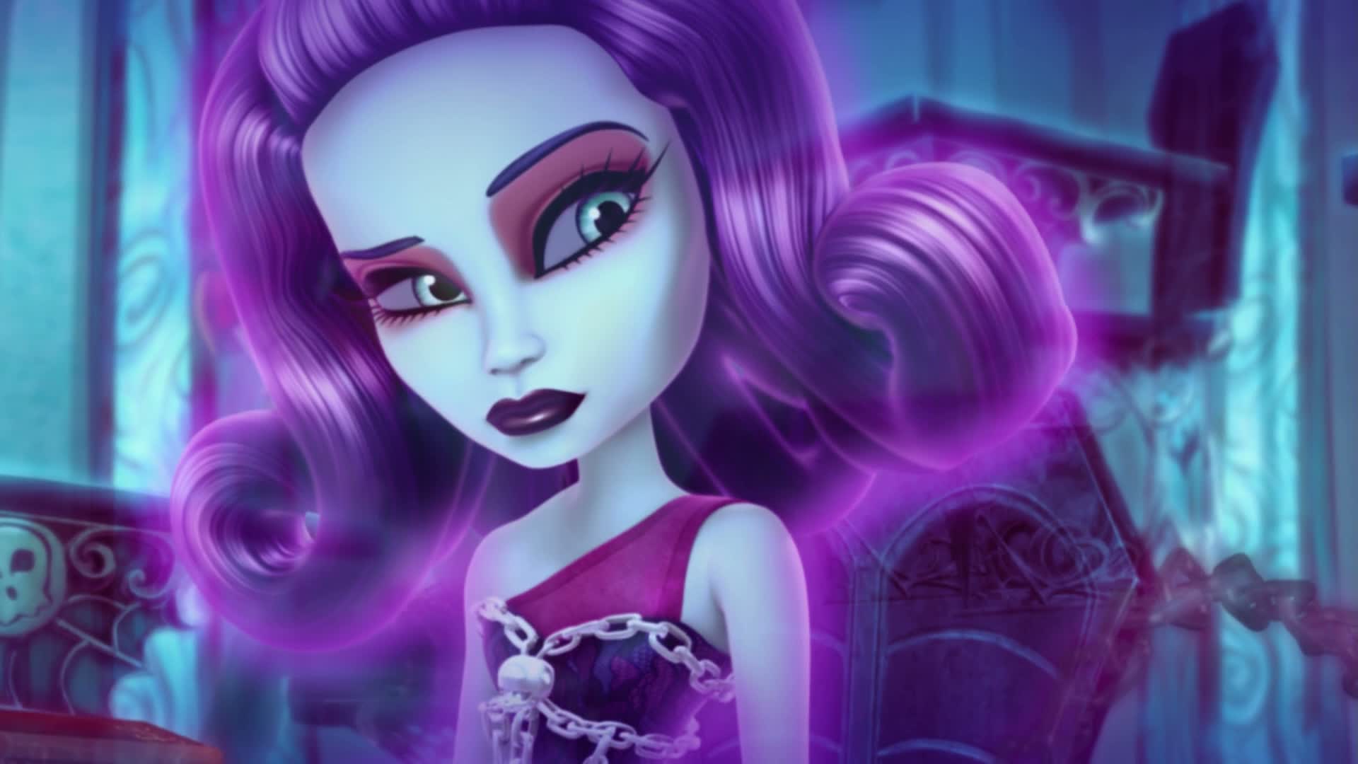 Lurk what's waiting for the Monster High ghouls when they bring their killer fashion to the howlways of the spooktacular Haunted High! When the ghouls of Monster High follow Spectra Vondergeist one day, they discover a creeperiffic Ghost World with an all-spirit school. But their scary-cute student bodies are hardly welcome with the very strict Principal Revenant, and she punishes Spectra with frightful detention chains that prevent her from re-joining Monster High. Now, it's up to the imperfectly perfect friends to take on ghostly forms in order to save one of their own from disappearing forever!