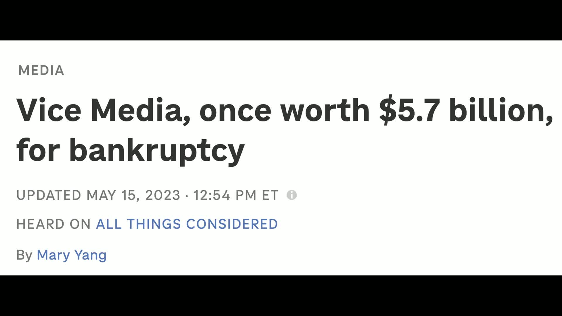 An investigation into the once high-flying digital news outlet that filed for Chapter 11 bankruptcy in 2023 after boasting a valuation of $5.7 billion in 2017.