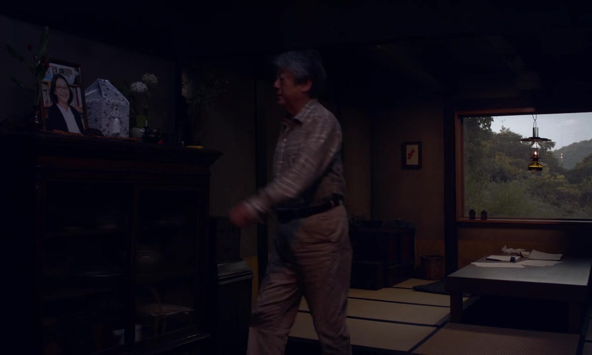 Tsutomu lives alone in the mountains, writing essays, cooking Zen food with the vegetables he grows and the mushrooms he picks in the hills. His routine is happily disturbed when Machiko, his editor and love interest, occasionally visits. Tsutomu seems content with his daily life. On the other hand, he still hasn't let go of his wife's ashes, although she died 13 years ago.