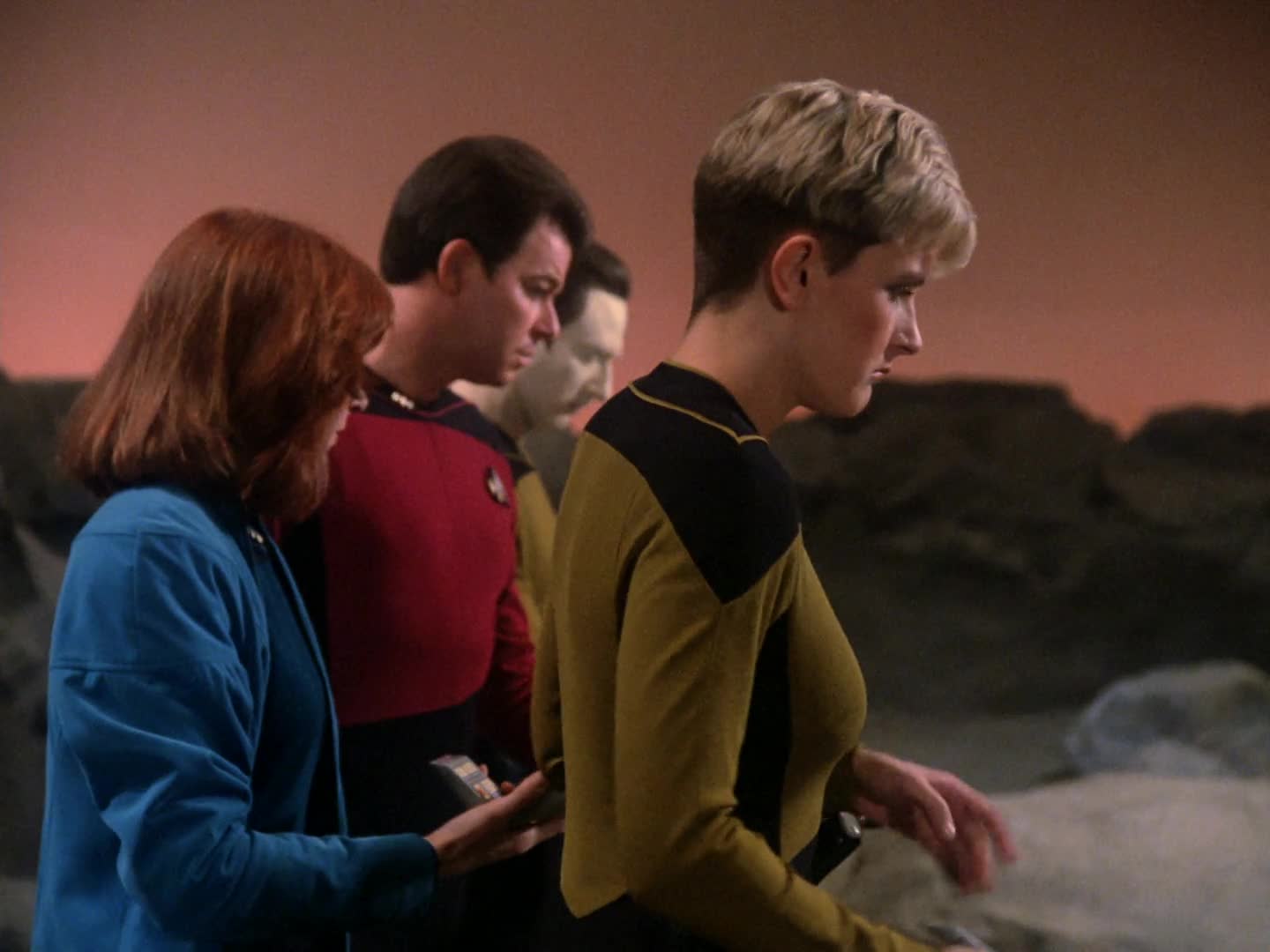 Cast: Patrick Stewart, Jonathan Frakes, Brent Spiner, LeVar Burton, Michael Dorn