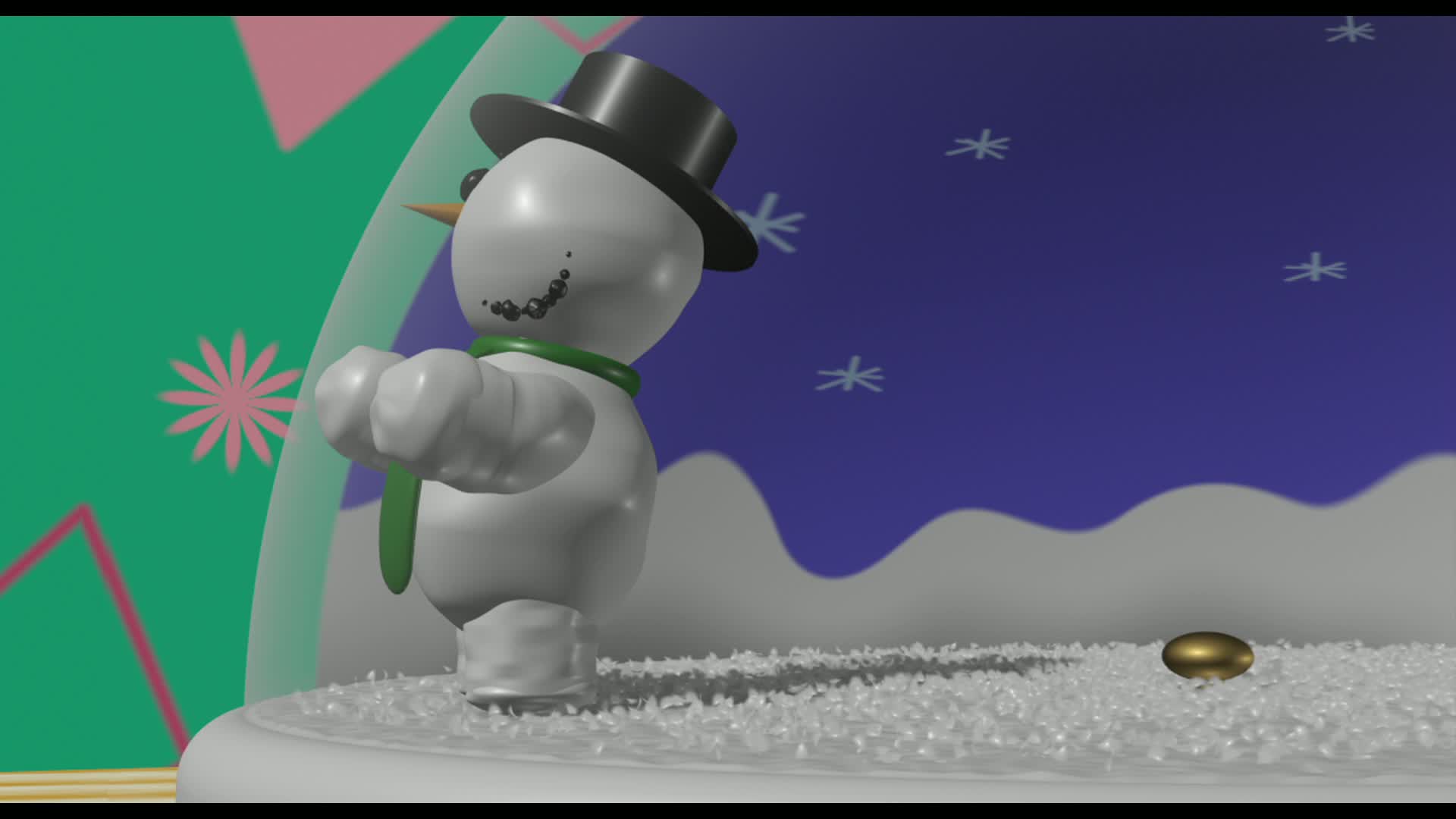 A snowman longs to break out of his snow globe.