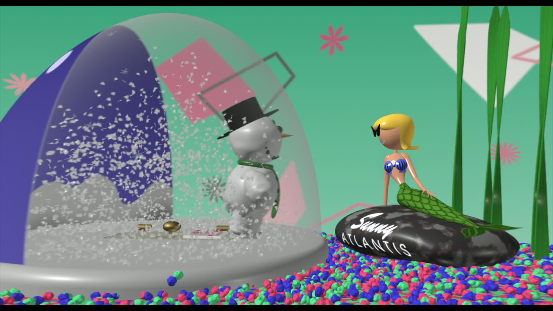 Life on a shelf as a snowman trapped in a snow-globe blizzard can become wearing, especially when you're surrounded by knickknacks from sunnier locales. When the jaded snowman finally breaks free of his glass house, his vacation plans are cut short.