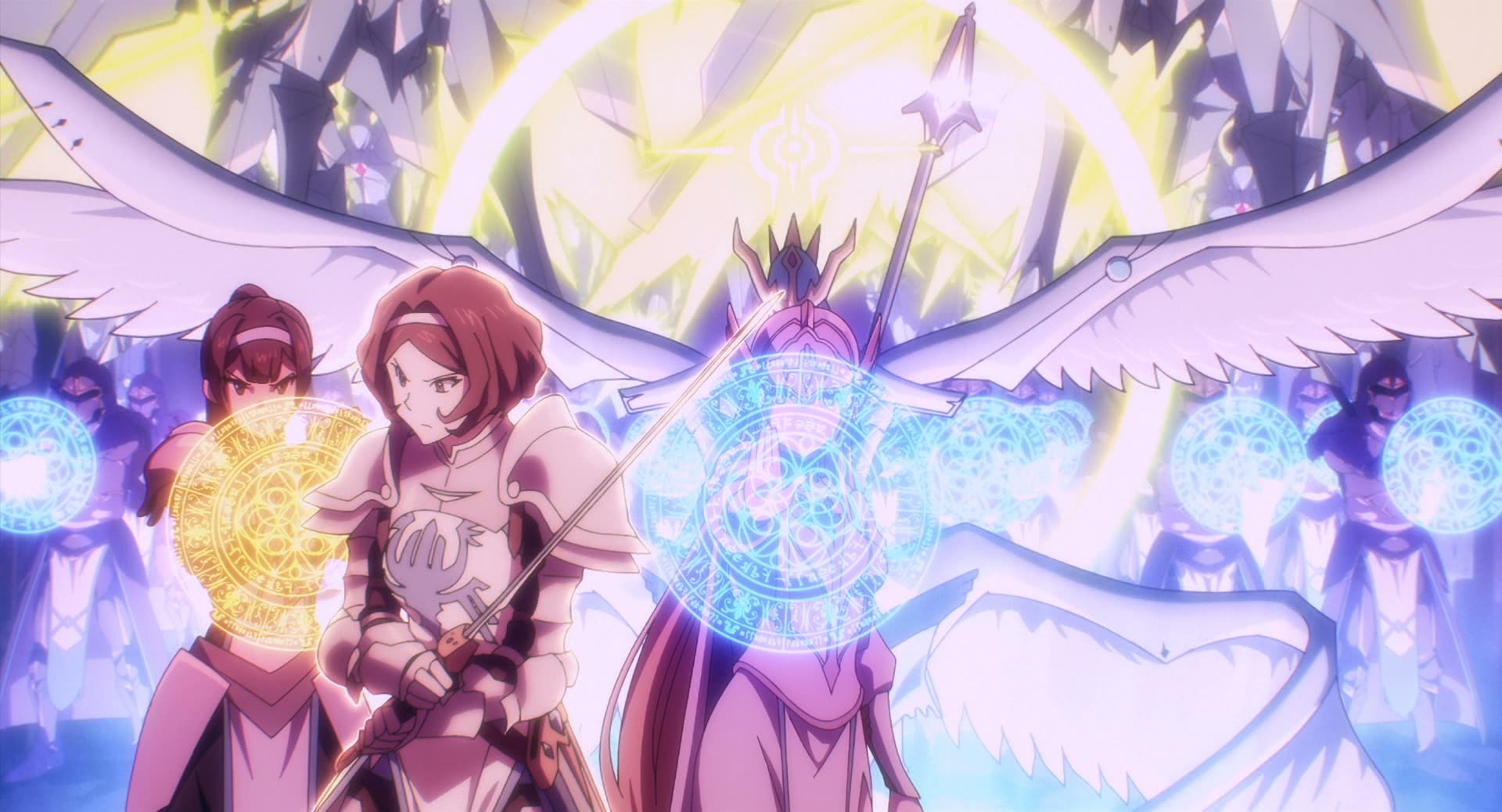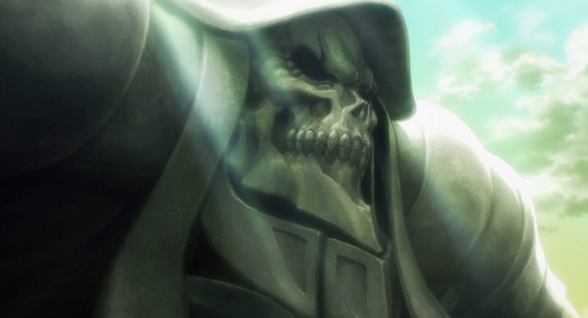 After twelve years of playing his favorite MMORPG game, Momonga logs in for the last time only to find himself transported into its world playing it indefinitely. Throughout his adventures, his avatar ascends to the title of Sorcerer King Ains Ooal Gown. Once prosperous but now on the brink of ruin, The Sacred Kingdom enjoyed years of peace after construction of an enormous wall protecting them from neighboring invasions. But, one day this comes to an end when the Demon Emperor Jaldabaoth arrives with an army of villainous demi-humans. Fearing invasion of their own lands, the neighboring territory of the Slane Theocracy is forced to beg their enemies at the Sorcerer Kingdom for help. Heeding the call, Momonga, now known as the Sorcerer King Ains Ooal Gown, rallies the Sorcerer Kingdom and its undead army to join the fight alongside the Sacred Kingdom and the Slane Theocracy in hopes to defeat the Demon Emperor.