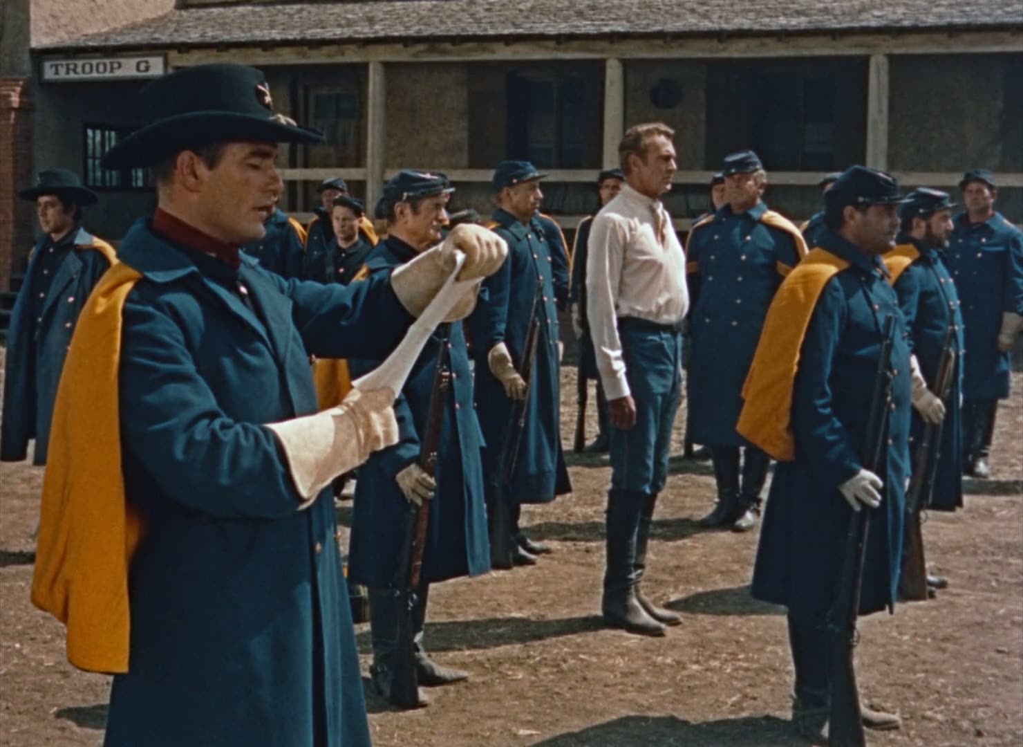 Major Lex Kearney, dishonourably discharged from the army for cowardice in battle, volunteers to go undercover to try to prevent raids against shipments of horses desperately needed for the Union war effort. Falling in with the gang of jayhawkers and Confederate soldiers who have been conducting the raids, he gradually gains their trust and is put in a position where he can discover who has been giving them secret information revealing the routes of the horse shipments.