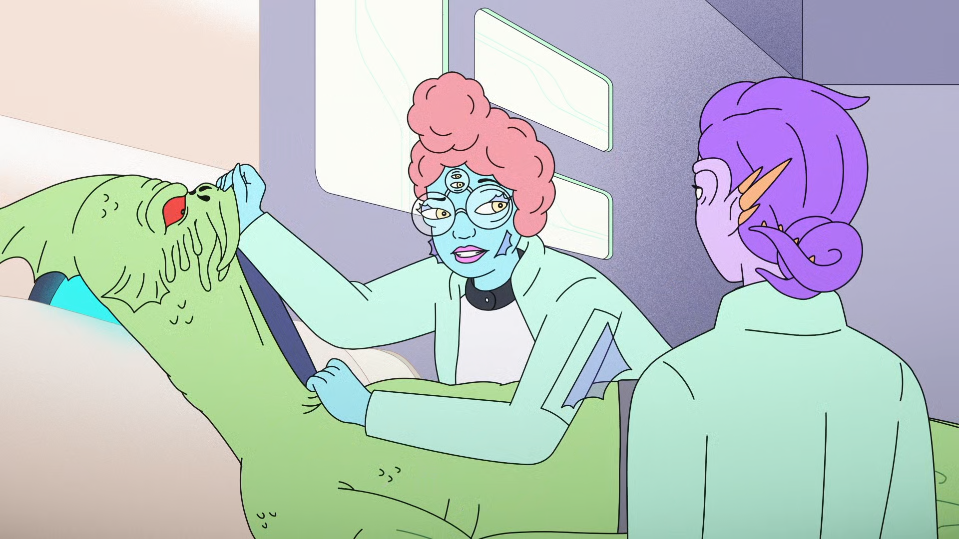 Dr. Sleech and Dr. Klak — aliens, best friends and intergalactically renowned surgeons — tackle anxiety-eating parasites, illegal time loops and deep-space STIs.