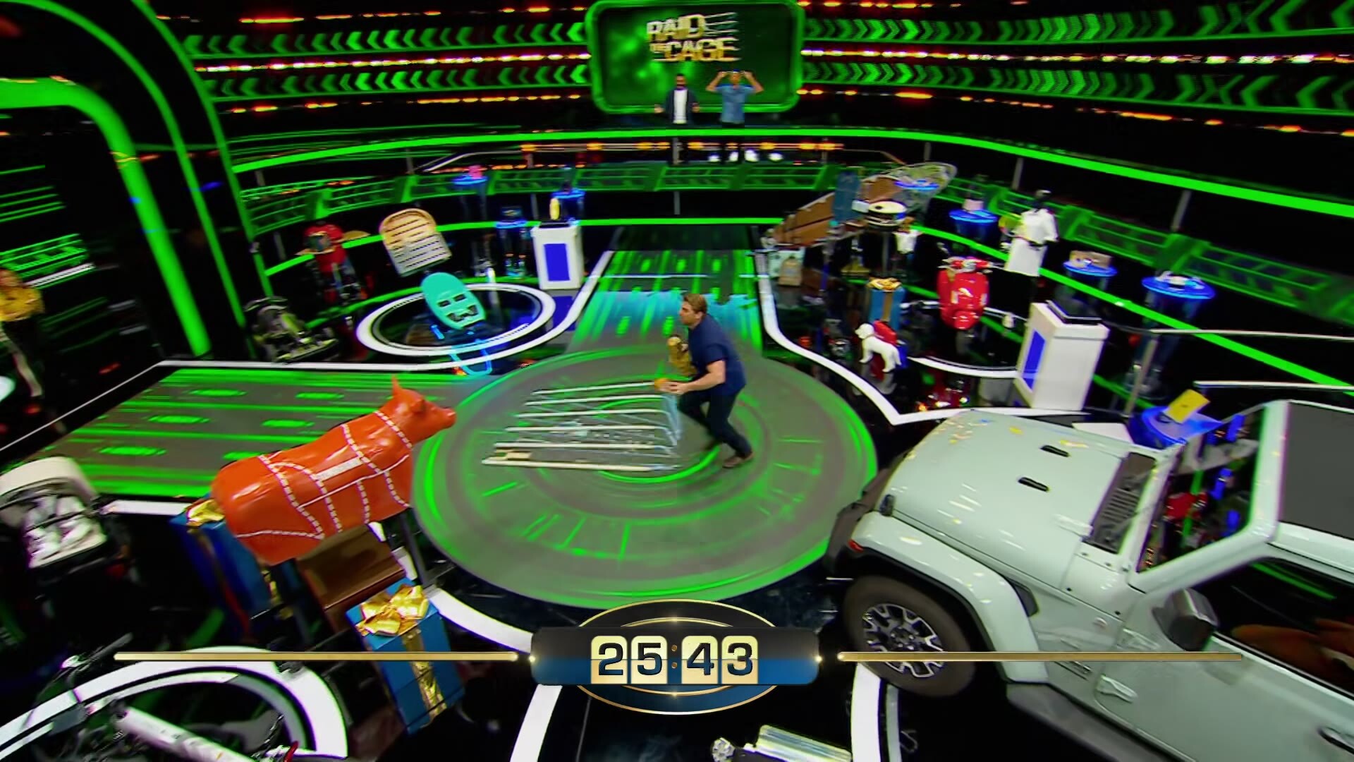 Two teams of two face off to grab-and-go prizes from the Cage before their time runs out and the doors close. After three rounds, the team that banks the highest total dollar value in prizes wins the game, keeps what they grabbed and plays the final round for an even bigger cash prize.