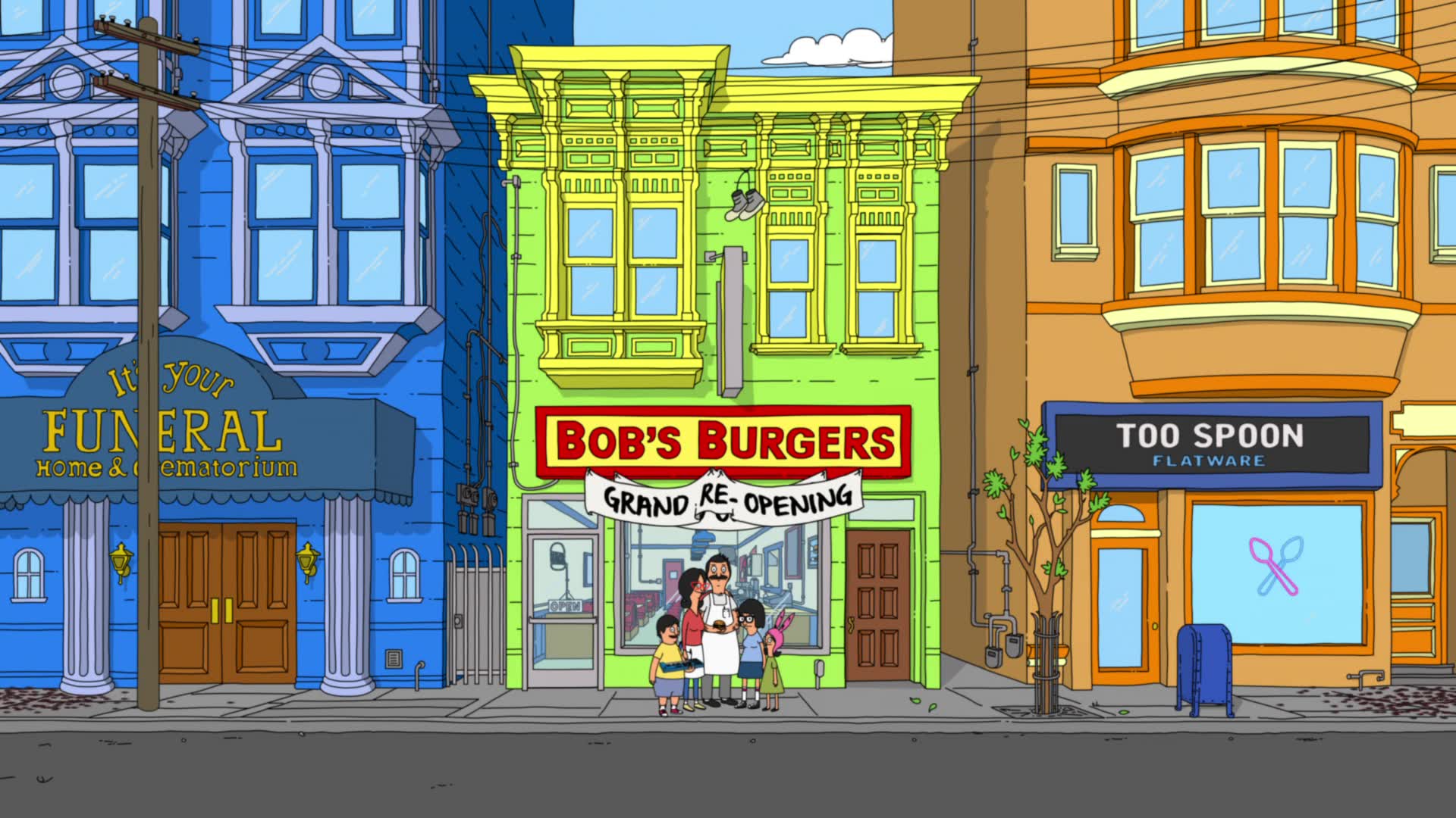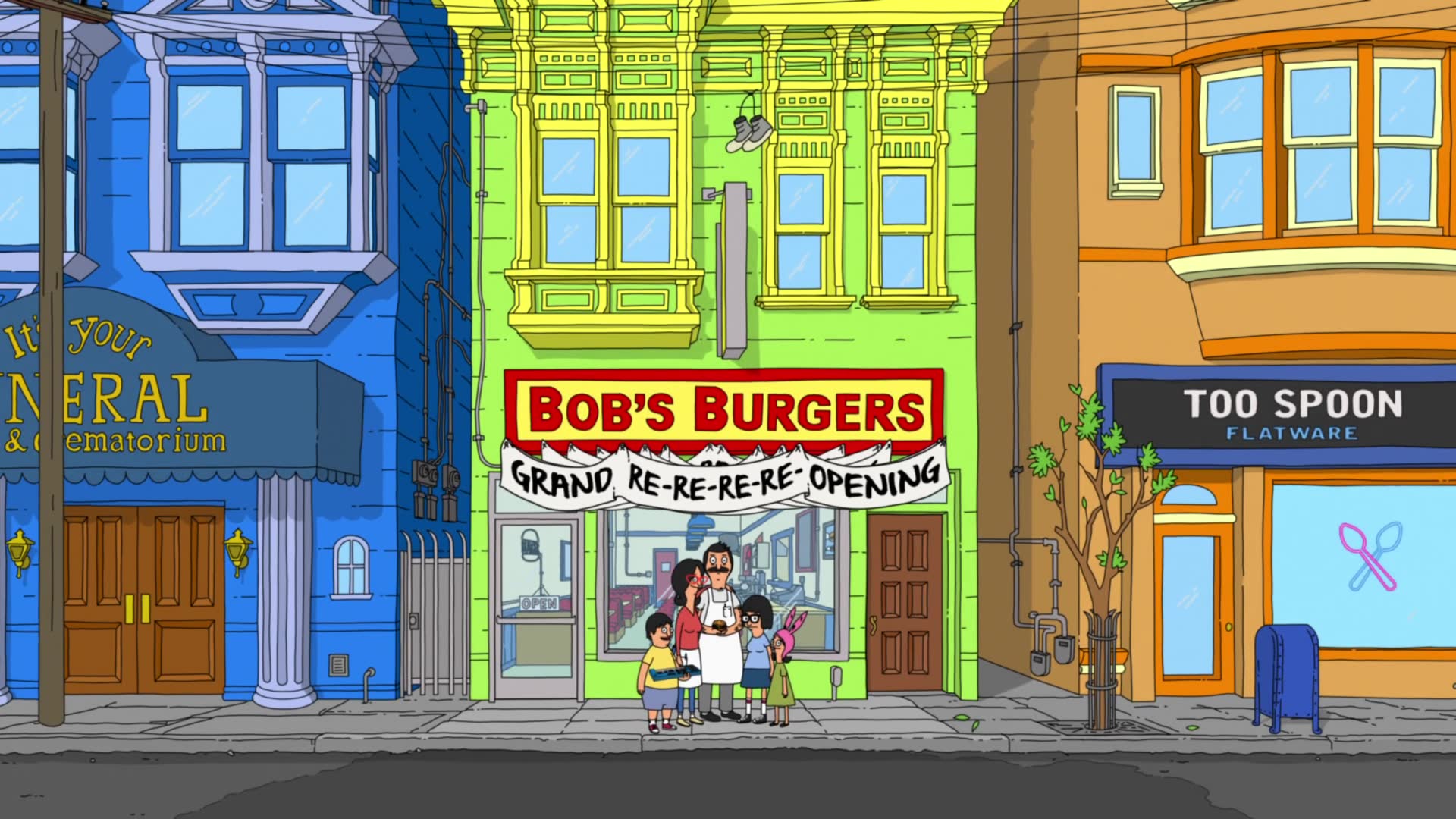 Bob's Burgers follows a third-generation restaurateur, Bob, as he runs Bob's Burgers with the help of his wife and their three kids. Bob and his quirky family have big ideas about burgers, but fall short on service and sophistication. Despite the greasy counters, lousy location and a dearth of customers, Bob and his family are determined to make Bob's Burgers "grand re-re-re-opening" a success.